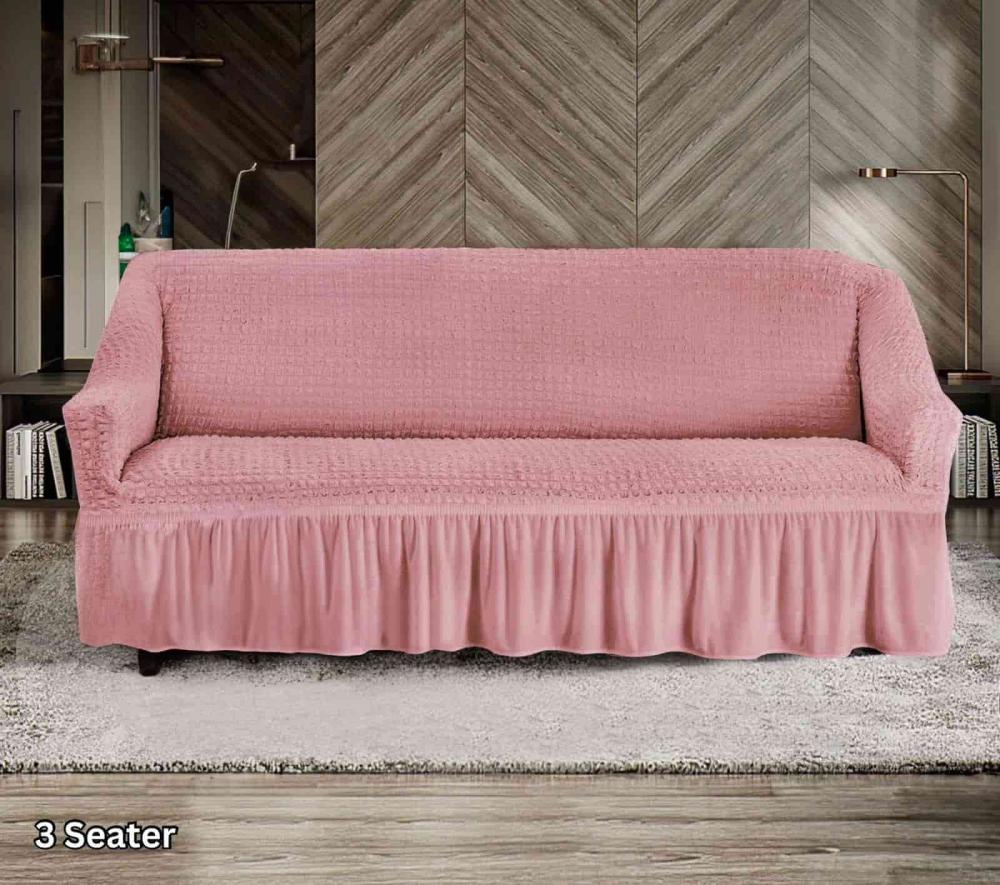 تلبيسة كنب مقعد ثلاثي سادة - وردي