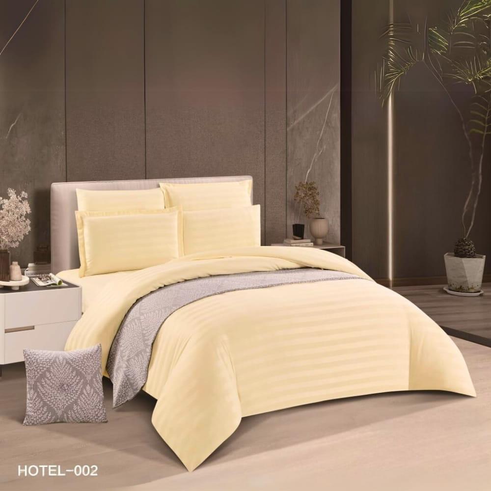 يتوفر من المفرش مجموعة متنوعة من الألوان الجذابة التي تناسب جميع الأذواق وتتناسق مع الديكورات المختلفة، وتشترك جميع قطع طقم مفرش هوتيل في اللون والتصميم لإضفاء لمسة جمالية لا تُضاهى.