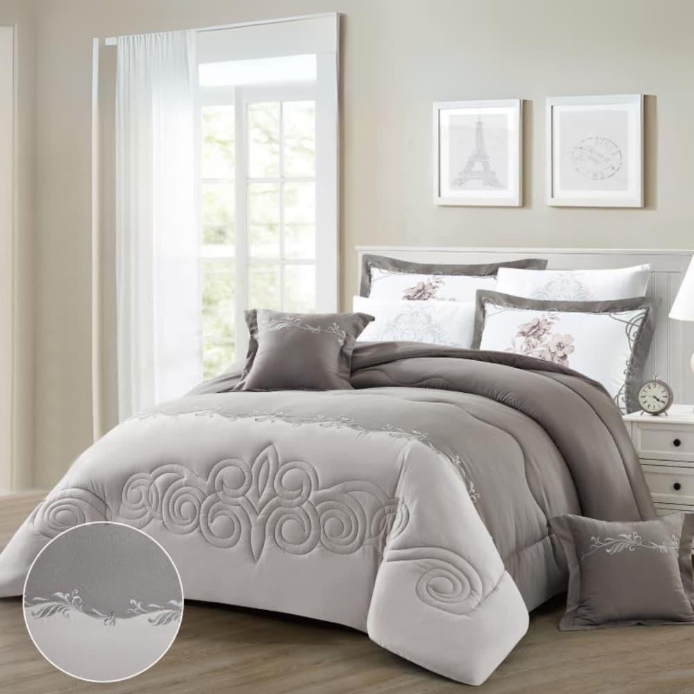 السطح الخارجي للمفرش أنيق وفخم يضم لمسات فاخرة من التطريز الراقي تمنح المفرش مظهر فخم ويضيف إلى السرير لمسة فاخرة.