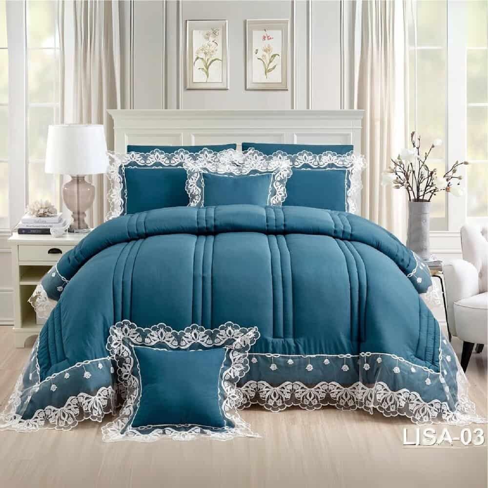 الحشوة داخل المفرش ثابتة ومتينة تعطي للمفرش شكله فلا يفقد شكله حتى بعد عدة مرات من الغسل والاستخدام، التصميم الأنيق والألوان العصرية تجعله خيار مناسب للعرائس لتزيين الغرفة والحصول على الراحة.