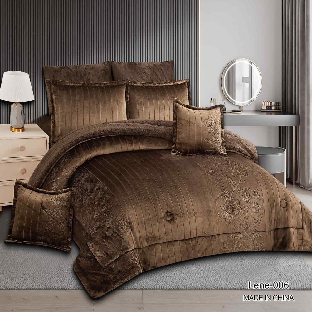 مفرش لين فرو مخمل شتوي - نفرين 8 قطع - بني