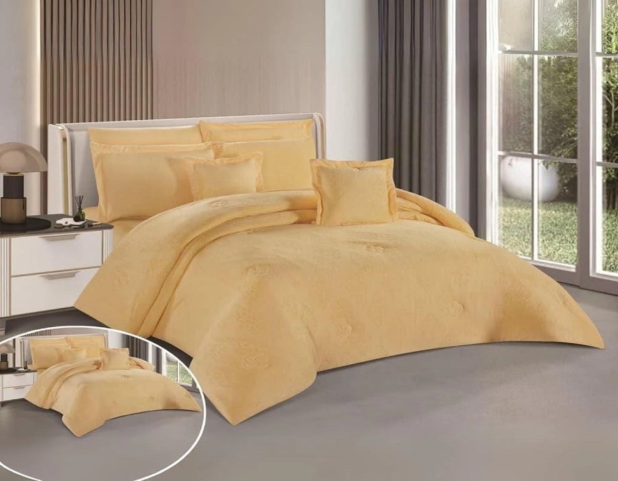 - مفرش سيلا مخمل شتوي – نفرين 8 قطع – أصفر بنقوش محفورة في السطح الخارجي ليجمع بين البساطة والفخامة لإحساس بالراحة والأناقة، يمكنك الحصول على المنتج بسهولة من هنا.