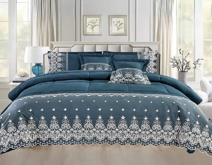 وأيضًا مفرش نتاليا دانتيل – نفرونص – تركواز لمحبي مفارش تركواز المطرزة بالدانتيل الراقي ويسهل تنسيقها مع حزمة كبيرة من الألوان.